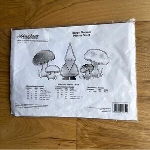 Happy Gnomes Pillowcase Pair and Dresser Scarf Cross Stitch Herrshners NEW