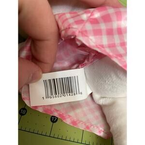 This delightful set of two Happy Go Fluffy plush stuffed animals is perfect for Easter. The cute white and pink bunnies come dressed in pink and white gingham checkered silk dresses with flowers, adding a touch of whimsy to their sweet faces. They are small in size, making them the perfect addition to any Easter basket or gift for a child.