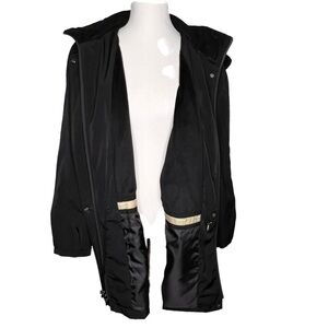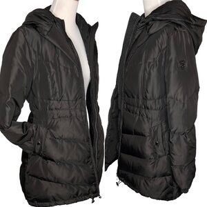 Happy Goat Black Long Down Puffer Coat Size M High Collar Hood Water Resistant