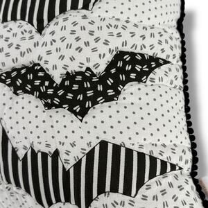 Happy Hallow Quilted Halloween Throw Pillow 17" Square Bats Polka Dot Stripe