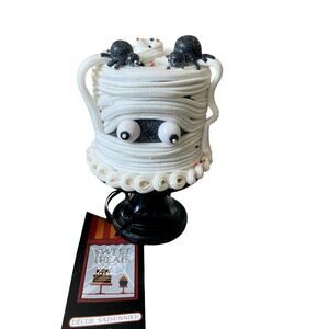 Happy Halloween CANDY CORN LANE Mummy Cake On Stand Super Cute Table Decor NEW