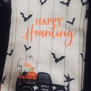 Happy Haunting Halloween Pumpkins bats Oven Mitt Dish Towel Kitchen decor 2p Set