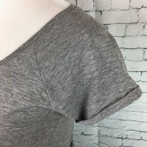 District Made Happy Healthy Balanced Peaceful Life T-Shirt, XS, Gray and White. 50% Polyester, 38% Cotton, 12% Rayon. Tiny variation in the fabric (please see photo).
