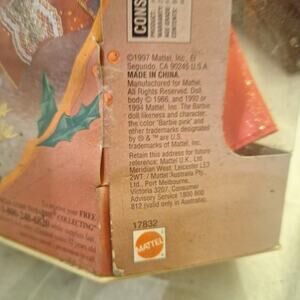 The Happy Holidays 1997 Barbie Doll Special Edition is a collectable Barbie doll from Mattel, featuring a festive red color theme perfect for Christmas. This special edition Barbie comes in a gold box from Hallmark Keepsake, adding to its value and appeal as a holiday collectible from the 1990s. Made of plastic and manufactured in China, this Barbie is a charming addition to any holiday memorabilia collection, capturing the spirit of the Christmas season in a timeless and nostalgic way.