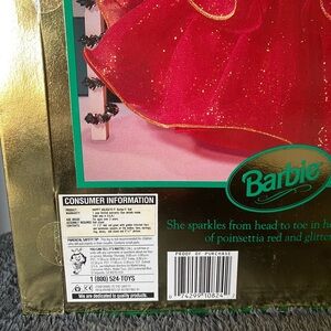 The 1993 Happy Holidays Barbie Doll Christmas Special Edition by Mattel features a stylish red gown, blonde hair, green eyes, and a light complexion. This vintage Barbie doll, standing at 12 inches tall, is part of the Barbie franchise and original in terms of its production. Perfect for collectors and Barbie enthusiasts, this fashion doll brings a touch of nostalgia from the 1990s with its classic design and holiday-themed packaging.