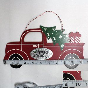 Happy Holidays Hanging Christmas Tree Presents Red Delivery Truck