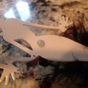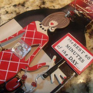 Funky decoration to hang from a wine bottle and has a magnet to hang from the refrigerator too.