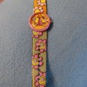 This watch is very vintage chic. It is oversized and colorful. Will need cleaning and a new battery. The watch face is a very large butterfly and the second hand is also a Happy House logo. If you are interested in vintage and unique jewelry, let me know. I may have the perfect piece for you.