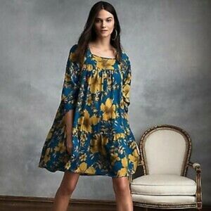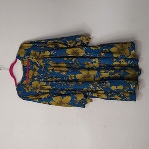 Happy Nature Blue and Mustard Yellow Square Neckline Dress Size S