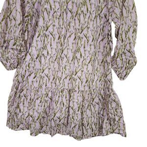 Happy Nature X by Kate Hudson Iris Print Boho Dress. the sleeves have ruching giving it a gathering effect. partially lined. has pockets