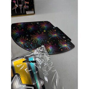 Celebrate the New Year with this comprehensive party kit designed for ten people. The kit includes cone hats, squawkers, and vibrant photo props, all adorned with a festive fireworks design. Make your party memorable and engaging with these colorful and fun accessories that ensure a joyful celebration.