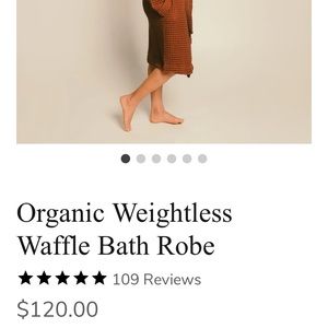Organic weightless waffle bath robe in the color clay! Unisex, size Large. Brand new with tags!