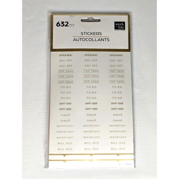 Happy Planner Stickers - Work + Life Balance, 632 Pieces, Neutral