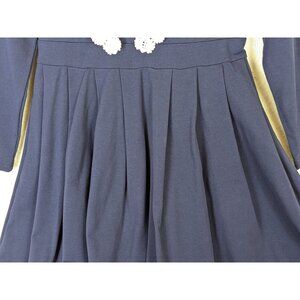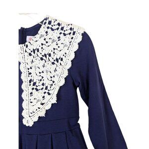 Happy Rose Girls size 10 Navy Cotton Knit Dress Crouched Lace Collar Stunning