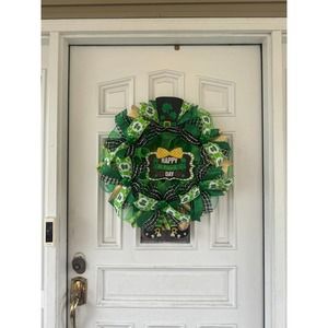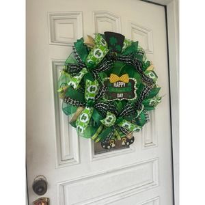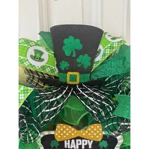 Happy Saint Patrick’s Day Leprechauns Mesh Ribbon Wreath Door Hanger