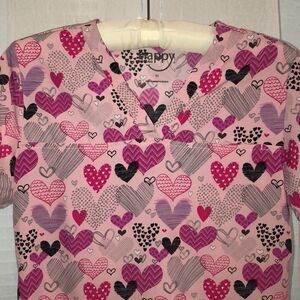 Happy Scrubs XS Heart Print Pink Black Scrub Top