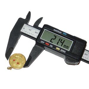 Happy Smiley Face Emoji Pendant in 14k Yellow Gold 2 Sided w Ruby