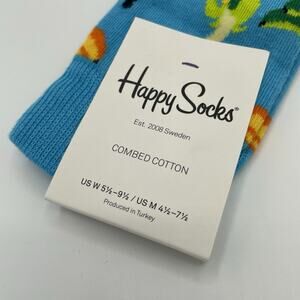 Happy Socks Banana Fun Print Turquoise Blue Unisex Women's 5.5 9.5 Men's 4.5 7.5