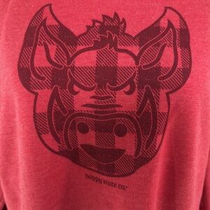 If you are a Razorback fan this sweatshirt is for you. Happy State is a Northwest Arkansas company that is a family owned. This will not be found in a department store. Smoke Free home