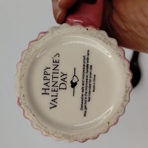 Happy Valentine's Day Hot Cocoa Mug Pink/white Striped Ribbed ceramic w/Spoon