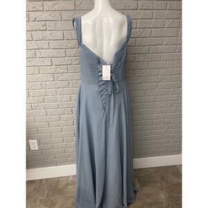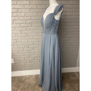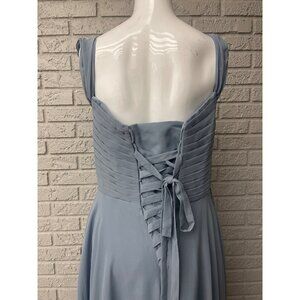 Happy Wedding Blue Pleated Lace-Up Back Bridesmaid Gown Size 12