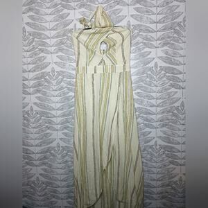 Happy X Nature Dress Linen Blend Cream Striped Halter Maxi Hi Lo NEW Kate Hudson