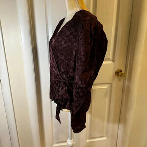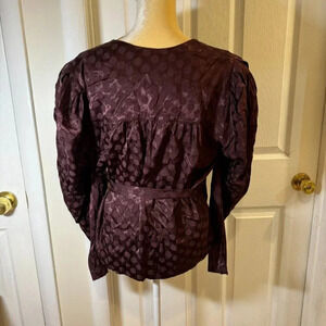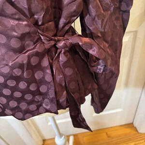Happy X Nature Kate Hudson Deep Maroon Polka Dot Puff Sleeve Wrap Blouse
