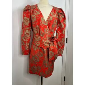 Happy X Nature Kate Hudson Women's Mini Dress Red/Gold Embroidered Glam Size 6