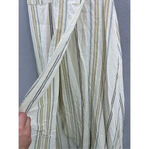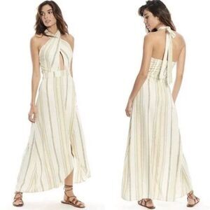 Happy X Nature Womens Cream Striped Linen Cutout Tide Halter Maxi Dress Size 4