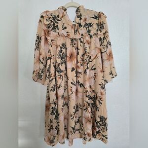 Happy X Nature Smocked Shift Dress Size Medium In Blush Floral Hibiscuos