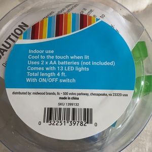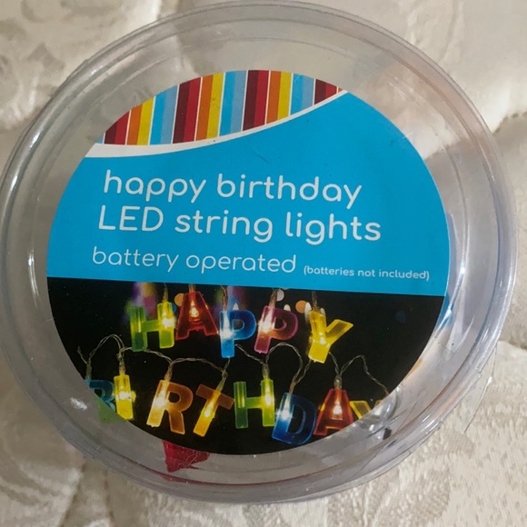 LED string lights that say Happy Birthday. Require 2 AA batteries