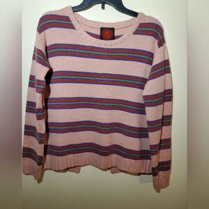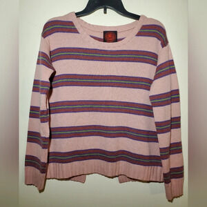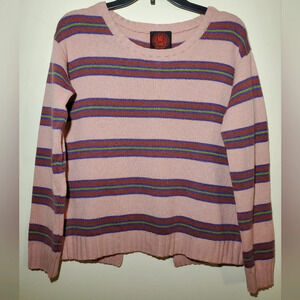 Happy sheep cashmere crew neck striped pink sweater open back size s