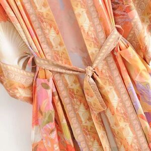 This Kimono/Robe is soft and the colors are warm. Very well made and perfect for the summer beach parties or paired with some jeans and a belt