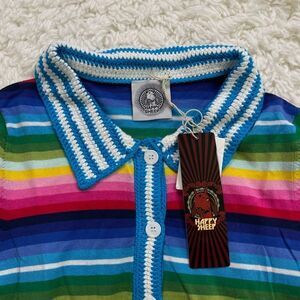 Happy Sheep Rainbow Cardigan w/ Crochet Collar