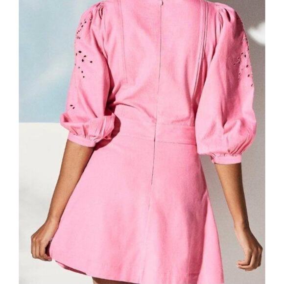 Happyxnature Kate Hudson Cara Eyelet Embroidered Mini Dress Pink Cotton Size 2