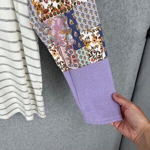 Haptics Boho Floral Mixed Print Top Size 2X Multicolor Patchwork Stretch Knit LS