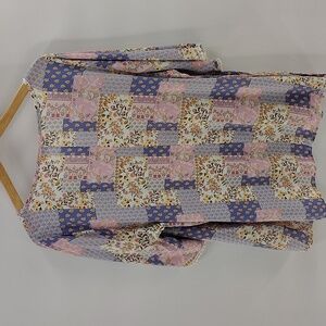 Haptics By Holly Harper Babydoll Top Size 1X Blue Pink Flowy Pullover Blouse