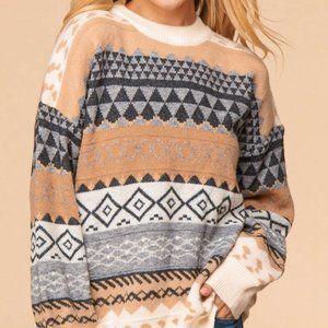 Haptics Full Size Run Geometric Dropped Shoulder Tunic Sweater