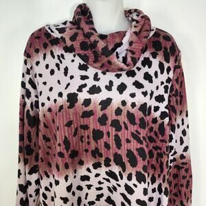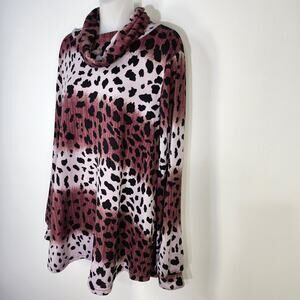 Haptics Holly Harper Women Top Size 1XL Animal Print Long Sleeve Tunic Cowl Neck