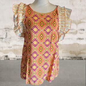Haptics NEW Seize The Day Peach Boho Print Frill Sleeve Keyhole Back Top-Medium