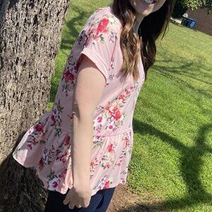 Haptics Pink Floral Short Sleeve Peplum Blouse