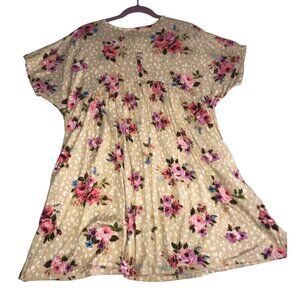 Haptics Size OS Tunic Top Dress Beach Cover Floral Pink Beige Pockets Baby Doll