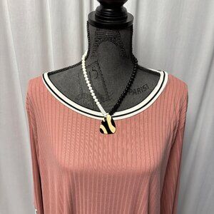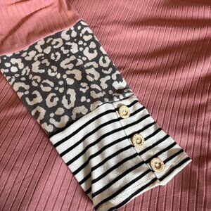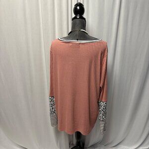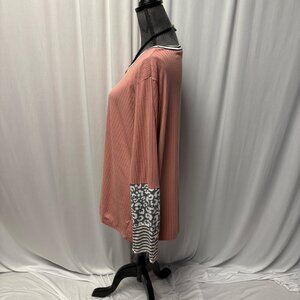 Haptics Womens Top Size 1X Ribbed Rose Pink Leopard Stripe Long Sleeves Comfy