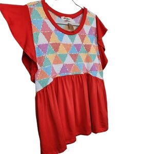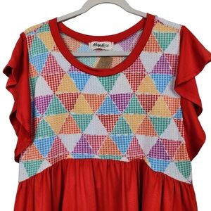 Haptics by Holly Harper NWT Triangle Maze Peplum Knit Ruffle Top Women's Large