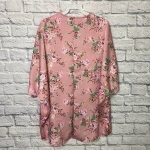 Haptics size Medium Pink Satin Floral Oversized Kimono
