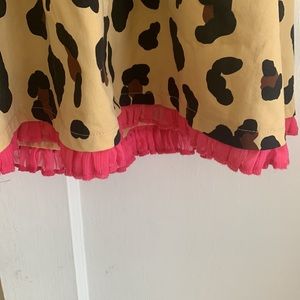Harajuku Mini Cheetah Dress from Target. Size Small 6/6X. Pleather bow and belt at waistline and lining the color. Zipper on back. Pink ruffle detail on bottom. So cute!