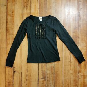 Harajuku Mini black long sleeve ruffle front shirt girls size 10 to 12 Sequins