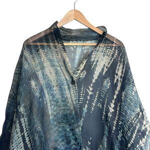 Harari 100% Silk Sheer Poncho Top Blouse Kaftan One Size Blue Black Abstract