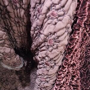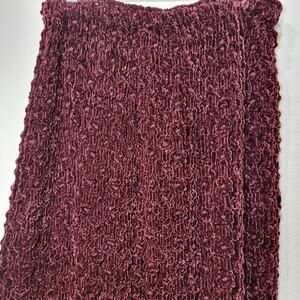 Harari long maxi woven velvet skirt. dark red or cranberry color. Thick woven velvet creates a beautiful floral pattern. Photos do not do this justice. Stunning piece. One Size to fit most with elastic waist and a nice stretch throughout. New with tags. NWT. 82% rayon and 18% silk. Measures 16"-22" across waist and about 44" long from top of waist to hem. Nonsmoking home with awesome pugs and a crazy bulldog.