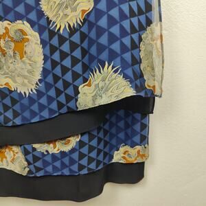 Harari Silk Maxi Skirt Womens XL Ble Black Asian Dragon Print Sheer Layered Boho